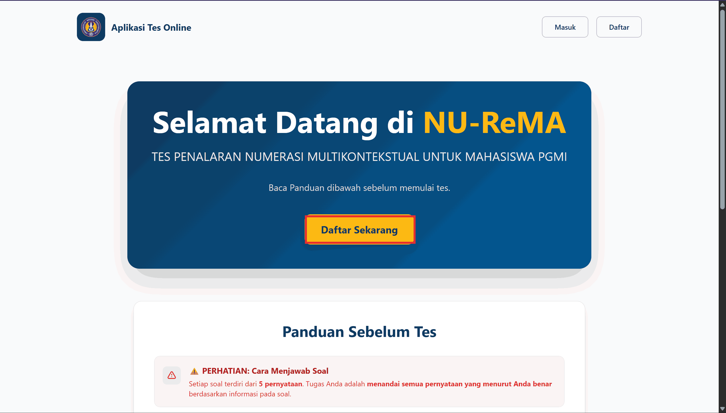 - Memberikan panduan teknis yang sistematis bagi dosen, peneliti, dan pengguna dalam melaksanakan, menilai, serta menginterpretasikan hasil tes NU-ReMA.
