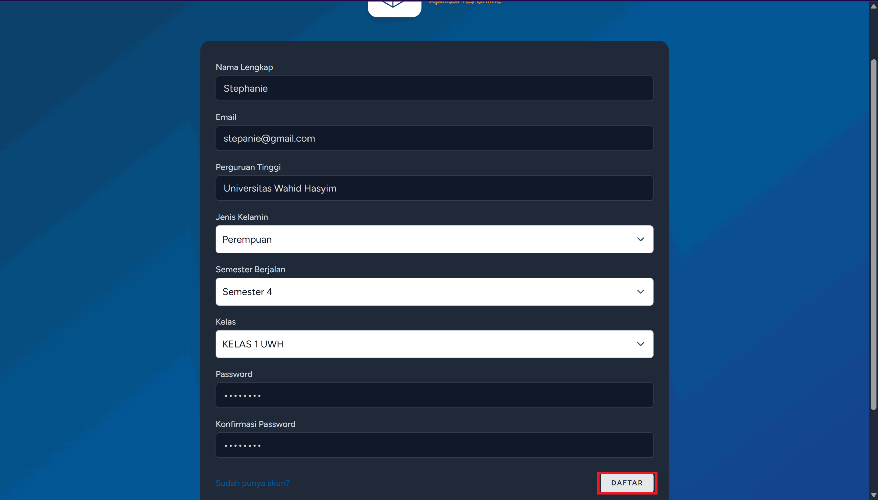 Isi identitas Anda pada pendaftaran, kemudian masukkan OTP yang dikirim lewat email.